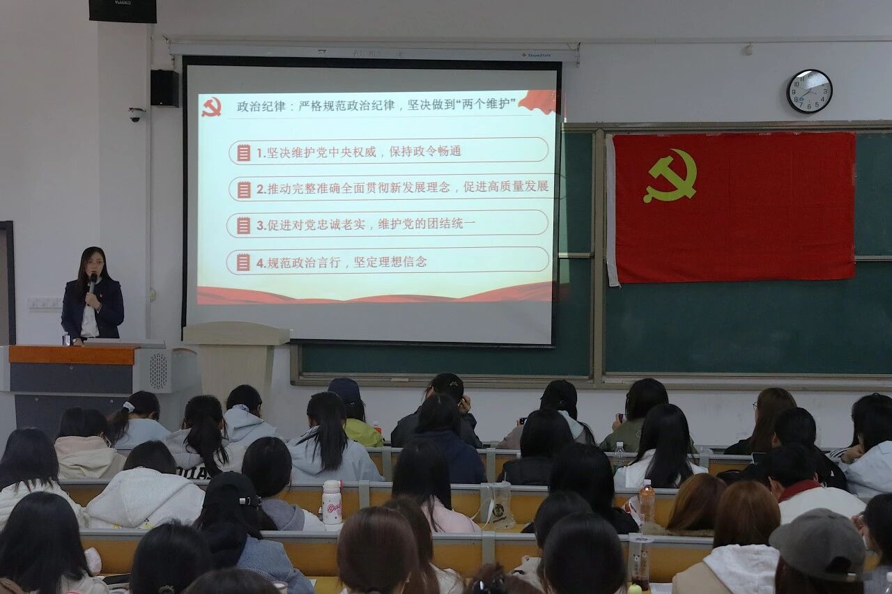为深入学习贯彻全面从严治党要求,持续强化入党成员的纪律意识、规矩意识与党性修养,引导入党申请人树立正确的入党初心与党员标准,数字经济与管理学院第二十四期党课第三节专题学习与4月1日顺利开讲。本次课程由马克思主义学院马艳涛老师主讲,课程以党的组织纪律为核心,紧扣《中国共产党纪律处分条例》展开系统解读,并结合新时代党员素质要求开展专题教学,为全体学员带来了一堂内涵深刻、贴合实际的纪律教育课。