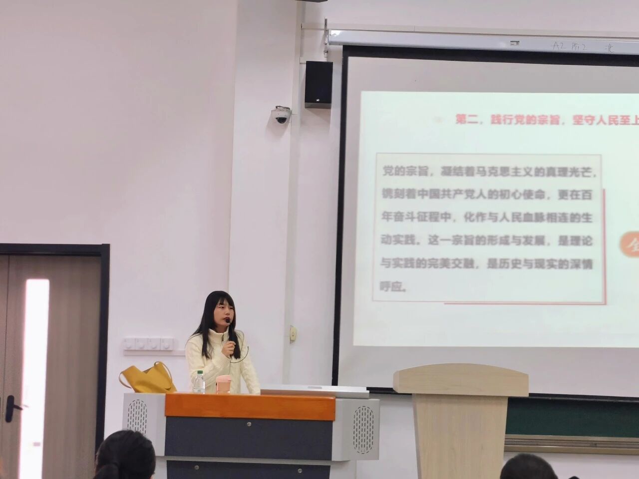 授课过程中,杨小霞老师围绕三大核心维度展开讲解。首先,在解读党的性质环节,她深入剖析中国共产党“两个先锋队”“一个领导核心”“三个代表”的核心内涵,解锁百年大党永葆生机的基因密码,让学员理解党的性质是立党之本、执政之基;其次,在践行党的宗旨环节,她聚焦“全心全意为人民服务”根本宗旨,结合时代案例阐释人民至上的价值追求,引导学员坚守为民初心;最后,在勇担青年使命环节,她结合新时代青年定位,号召学员将个人理想融入民族复兴伟业,以实干担当诠释初心使命。