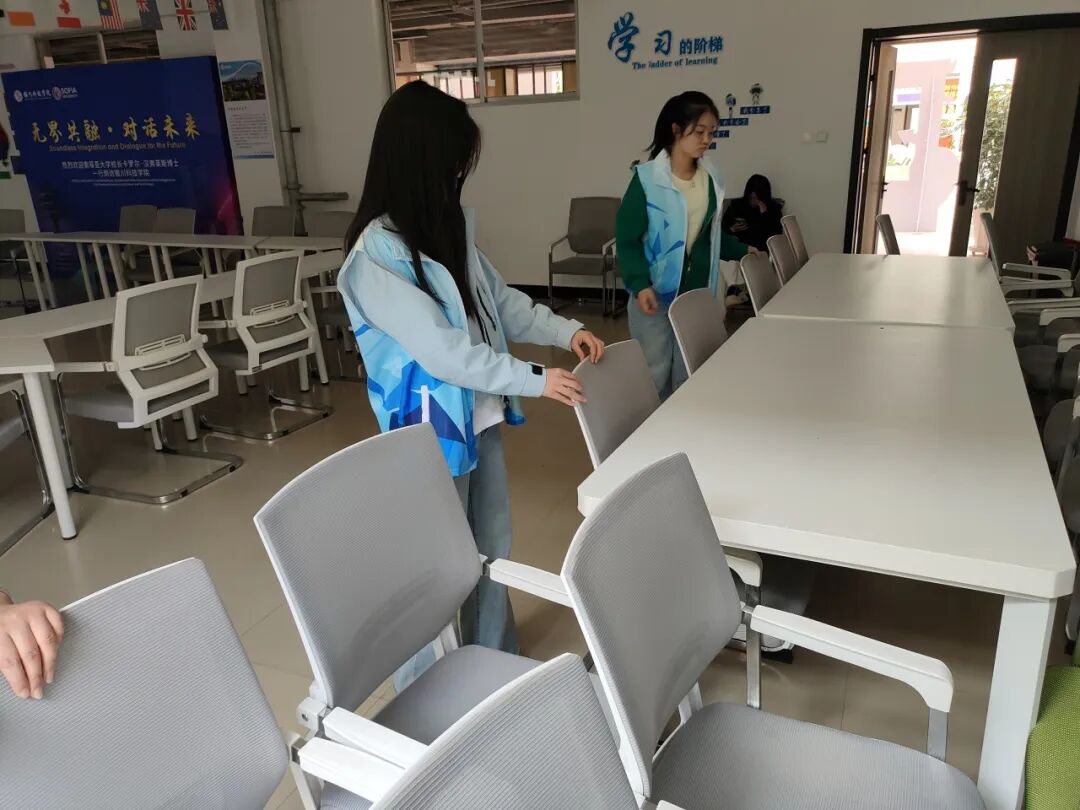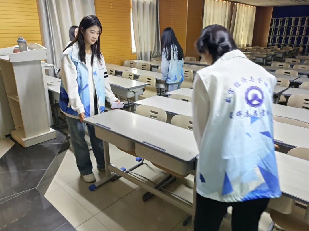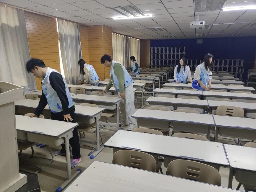本次志愿活动以“美化校园、服务师生”为核心,青马班学员分为两组,聚焦教学楼环境优化与校园公共区域治理。通过有序分工与高效协作,学员们迅速投入劳动,从桌椅归位到区域清扫,从细节整理到环境维护,以点滴行动为校园注入清新活力。