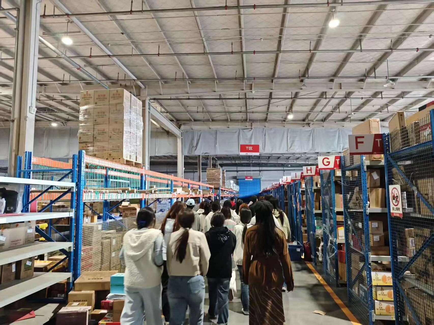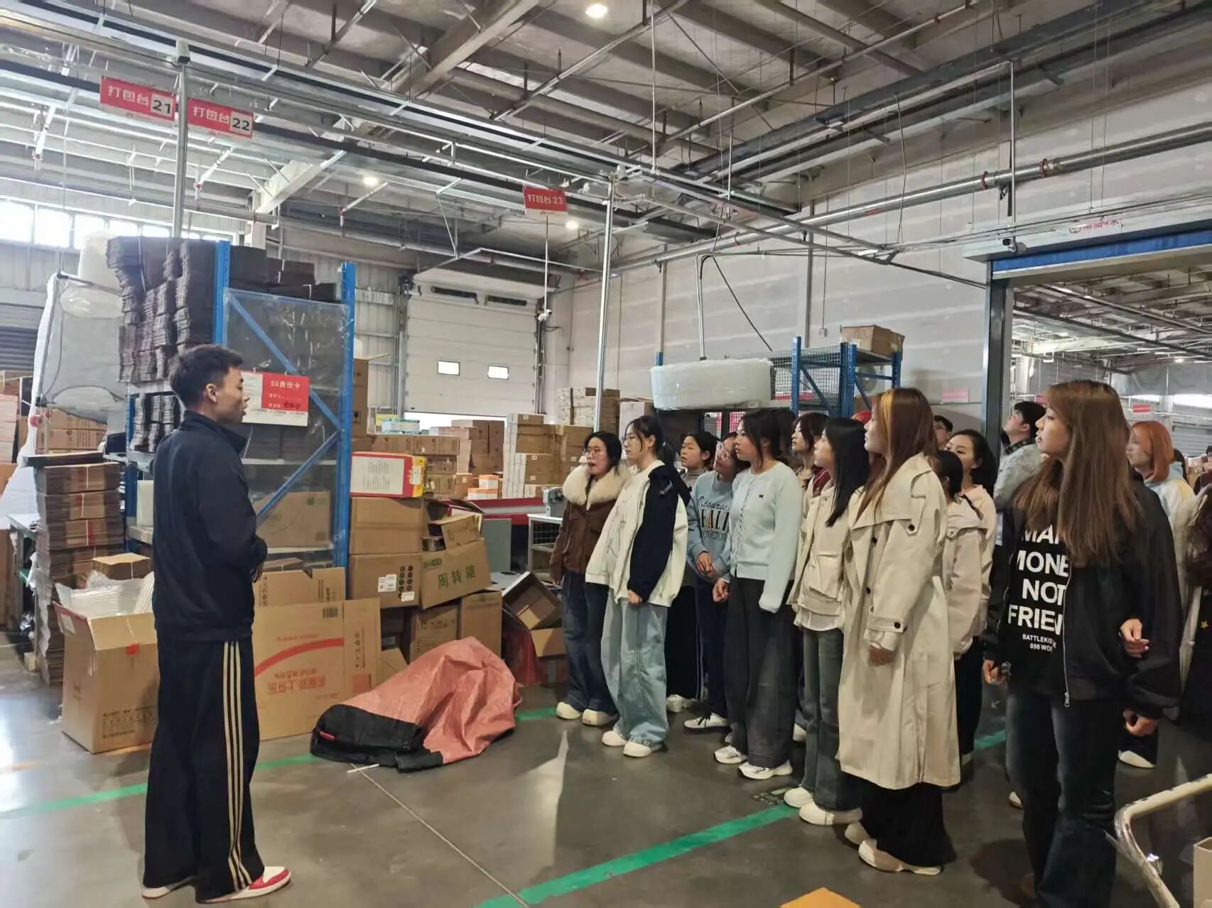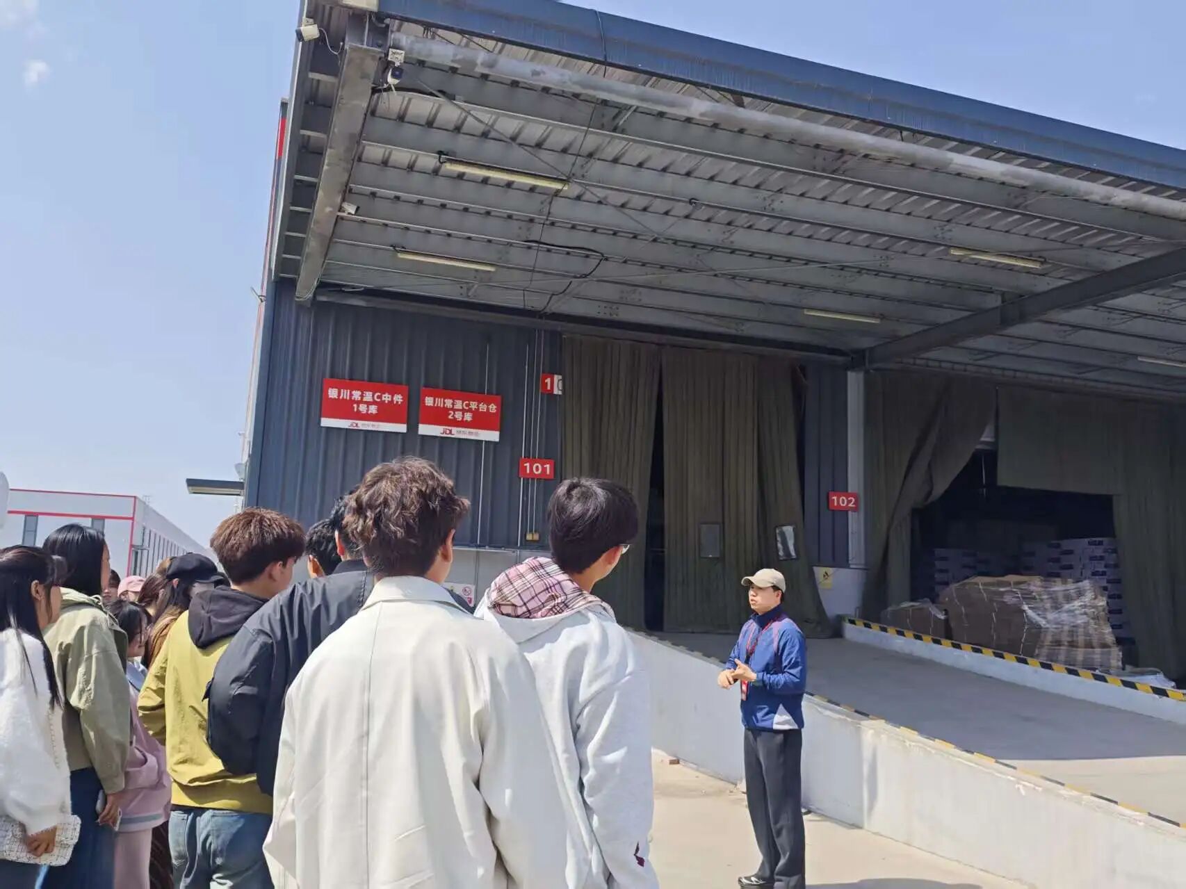在京邦达供应链科技有限公司,许彬经理带领师生实地参观了现代化物流仓库,讲解了仓储布局、智能分拣系统及作业流程,并重点介绍了物流成本的构成与管控方法,包括运输成本、仓储成本、人员工资的核算机制,以及货损成本的处理流程。