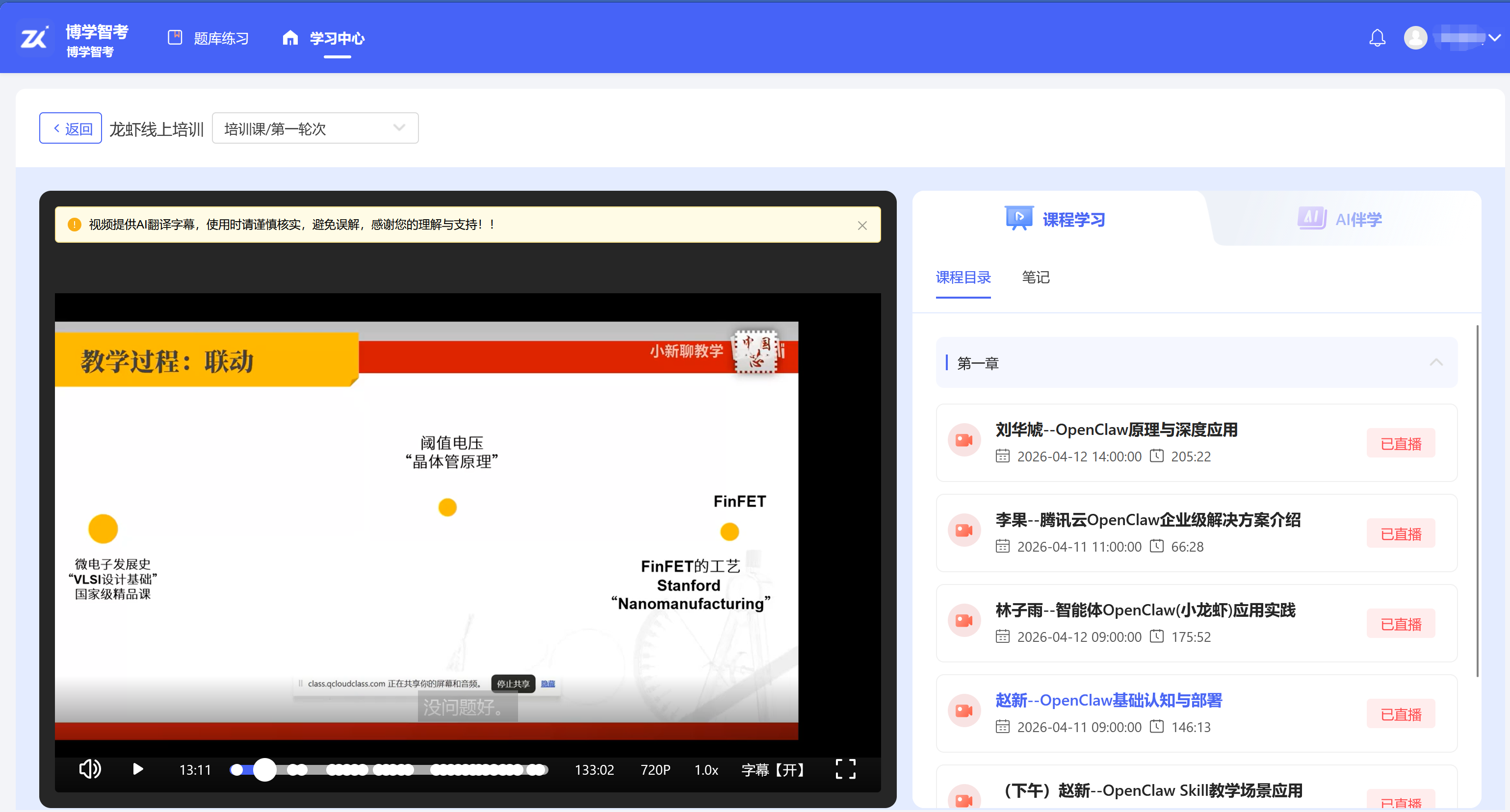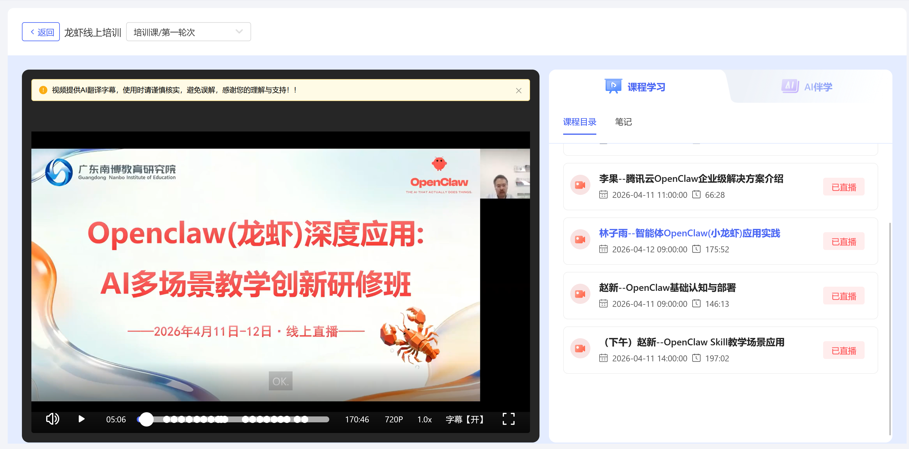 为应对人工智能技术对教育教学的深刻变革,提升教师教学创新与科研辅助能力,在鲁班智能建造产业学院组织下,数字经济与管理学院工程造价专业教师刘琼于4月11日至12日参加了由广东南博教育研究院、东莞南博创新科技研究院有限公司联合主办的“OpenClaw(龙虾)深度应用:AI多场景教学创新研修班”。本次研修班以线上直播形式进行,聚焦开源AI智能体OpenClaw在教学场景中的实操与深度应用。