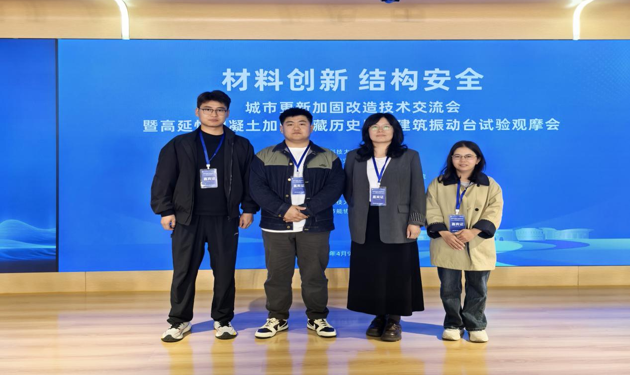2026年4月8日- 9日,银川科技学院鲁班智能建造产业学院组织工程造价专业教师崔莹、吴萍和学生杨嘉鹏、王国裕4人赴西安建筑科技大学草堂校区,参加“城市更新加固改造技术交流会暨高延性混凝土加固西藏历史风貌建筑振动台试验观摩会”。本次会议汇聚全国工程勘察设计大师、专家学者及行业代表 160 余人,共研城市更新与建筑加固前沿技术。
