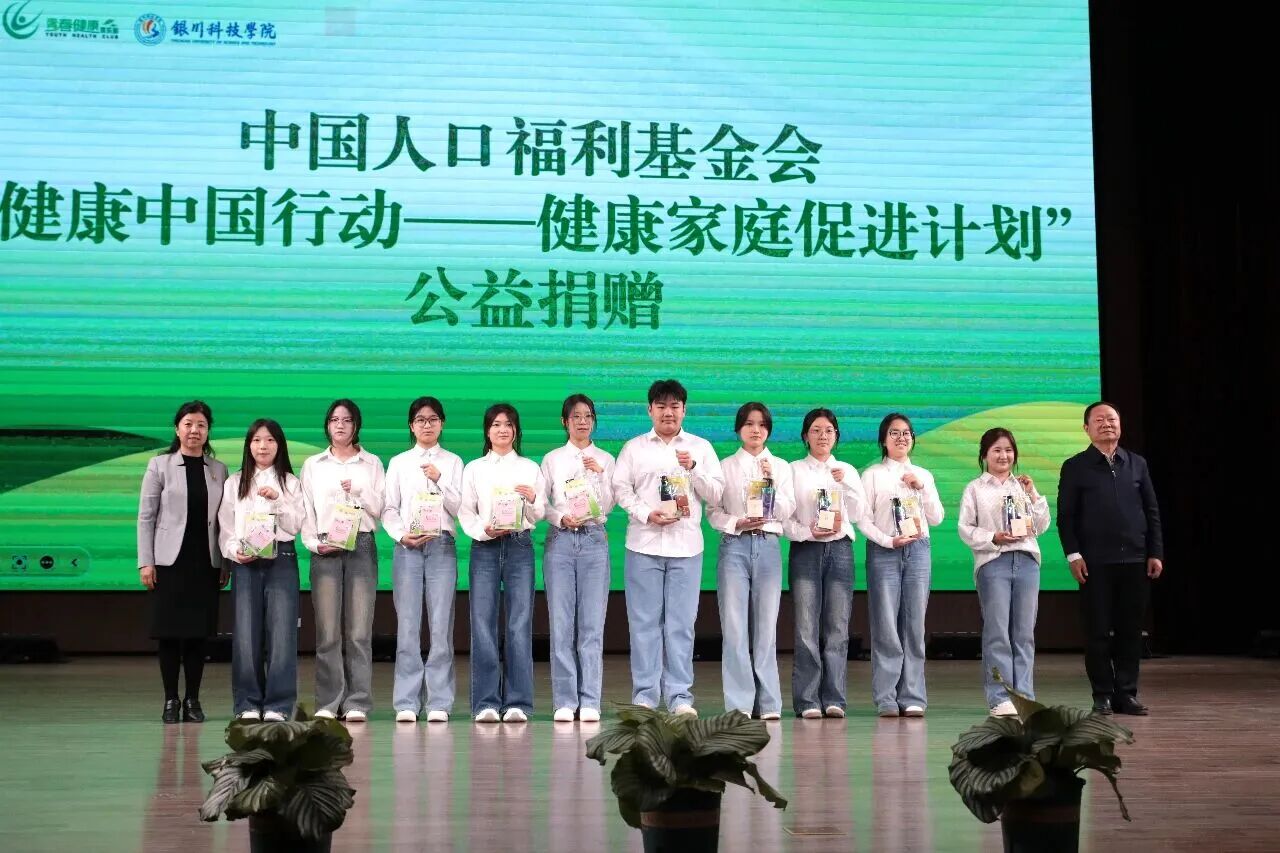 揭牌礼成,关爱延续。依托中国人口福利基金会“健康中国行动——健康家庭促进计划”公益项目,自治区计划生育协会向俱乐部捐赠了青春健康书籍、宣传品及日常用品等物资。自治区计生协秘书长杨霞、银川科技学院副校长王亮上台为学生代表发放捐赠物品,以实际行动支持青春健康教育落地生根,为青年健康成长注入温暖力量。